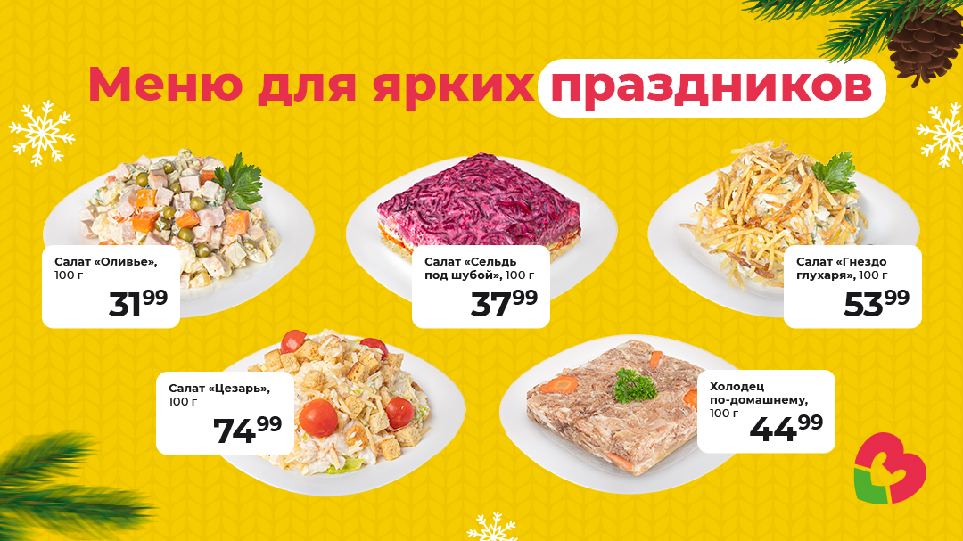 В преддверии праздников мы предлагаем популярные позиции готовой еды по привлекательным ценам:
